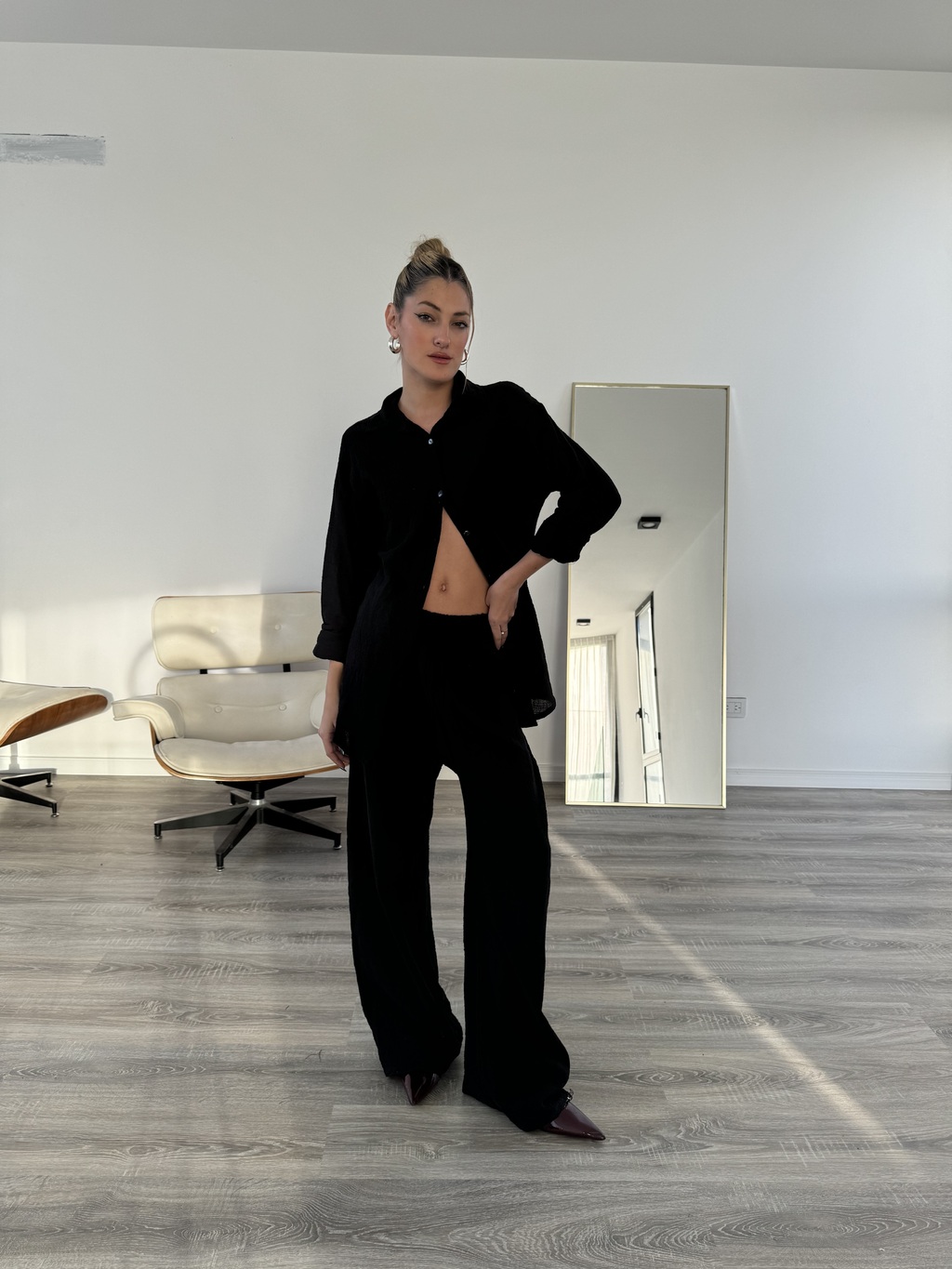 Camisa confeccionada en lino , tipo oversize, combínala con el pantalón Sicilia , tiene elástico en la cintura y de confección súper holgada para más comodidad adaptando varios talles