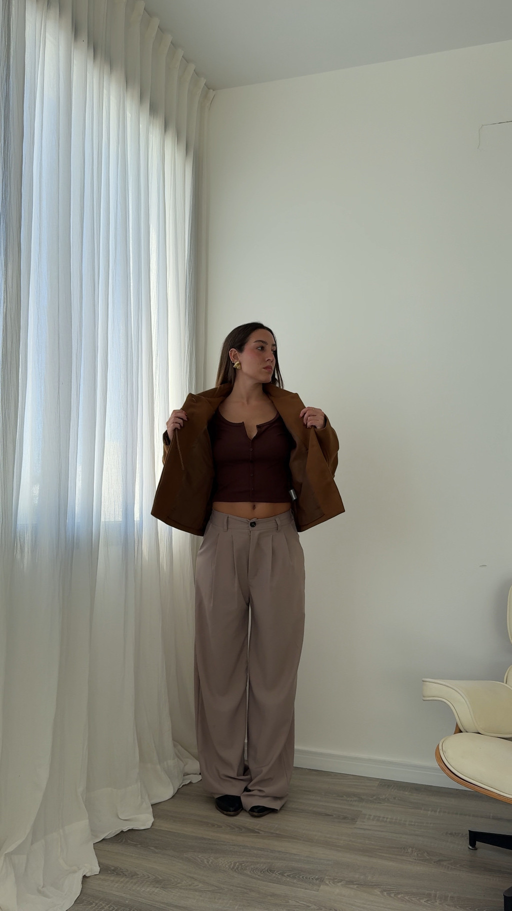 Pantalón de tela sastrera con caída , pliegues en la parte frontal , bolsillos delanteros , pasacinto y elástico en la parte de atrás de la cintura para un mejor calce . Los talles son medidas reales. Hace set con el chaleco Florida