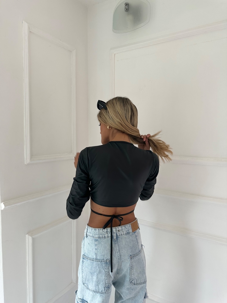 Top engomado regulable con tiras para atar por delante o detrás